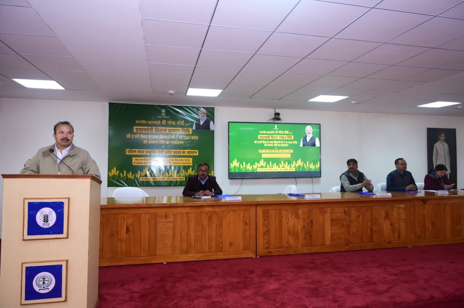 आज दिनांक 19 नवम्बर, 2025 को प्रधानमंत्री नरेंद्र मोदी द्वारा प्रधानमंत्री किसान सम्मान निधि (PM-KISAN) योजना की 21 वीं किस्त जारी किए जाने के अवसर पर भारतीय कृषि अनुसंधान परिषद – विवेकानंद पर्वतीय कृषि अनुसंधान संस्थान, अल्मोड़ा में एक विशेष एवं भव्य कार्यक्रम आयोजित किया गया। कार्यक्रम में मुख्य अतिथि के रूप में अल्मोड़ा नगर निगम के महापौर अजय वर्मा उपस्थित रहे। कार्यक्रम का शुभारम्भ् परिषद गीत से हुआ। इसके उपरान्त कृषक गोष्ठी का आयोजन किया गया जिसमें संस्थान के वैज्ञानिकों द्वारा कृषकों को रबी फसलों एवं सब्जियों के उत्पादन की उन्नत तकनीकी, मृदा स्वास्थ्य प्रबंधन, जैविक कृषि, जल संरक्षण तकनीकी एवं कृषि यंत्रीकरण संबंधी विस्तृत जानकारी प्रदान की गई। तदुपरान्त प्रधानमंत्री नरेंद्र मोदी द्वारा कोडिशिया ट्रेड फेयर कॉम्प्लेक्स, कोयम्बटूर, तमिलनाडु से देश के 9.75 करोड़ से अधिक कृषकों को लगभग 18,000 करोड़ रुपये की धनराशि उनके बैंक खातों में हस्तांतरित करने वाले ऐतिहासिक कार्यक्रम का सीधा प्रसारण देखा गया।