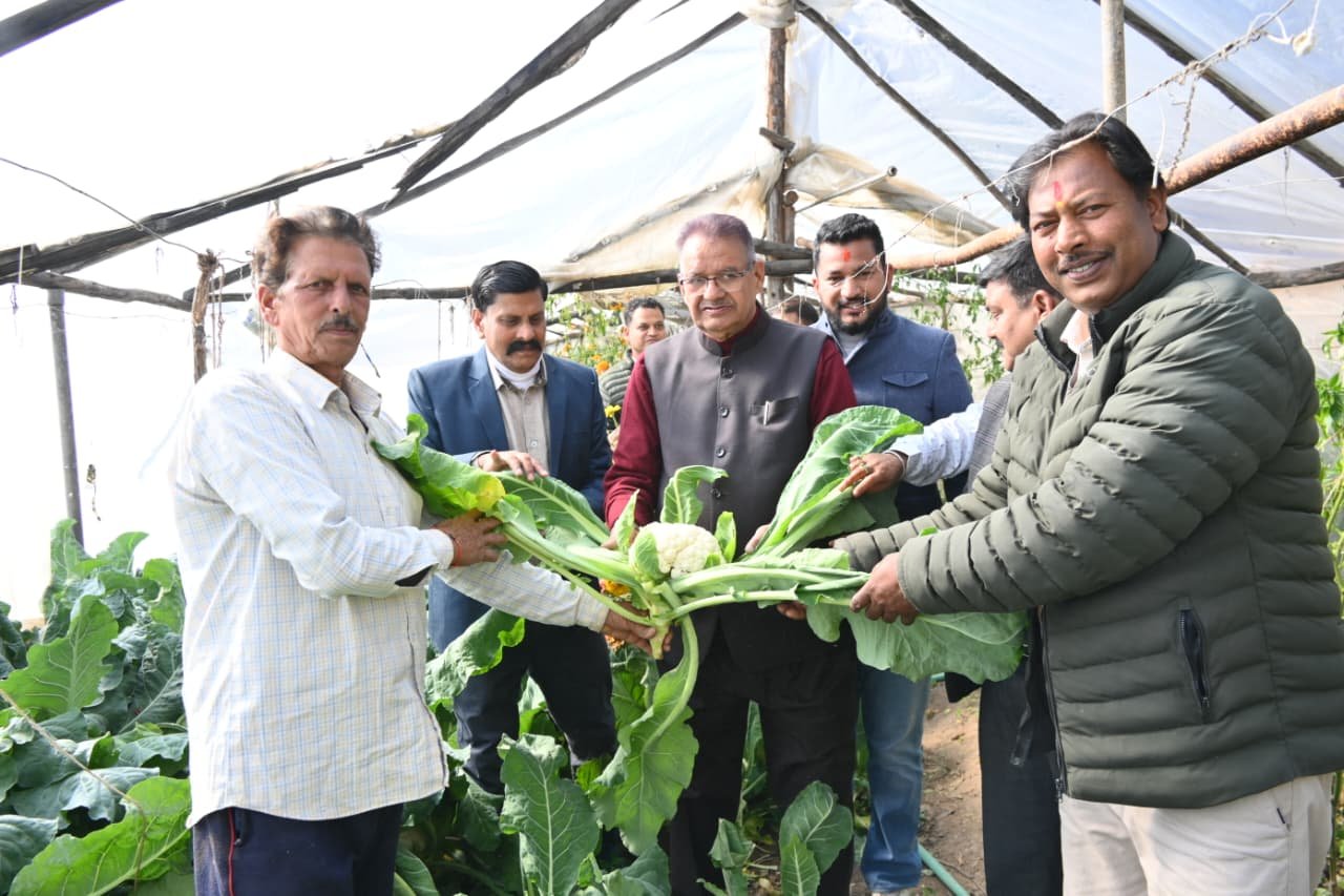 भगरतौला ग्रामीणों ने कृषि मंत्री को अवगत कराया कि जिला योजना एवं उद्यान विभाग द्वारा स्थापित 100 से अधिक पॉलीहाउस में क्लस्टर आधारित कृषि की जा रही है, जिसमें आलू, शिमला मिर्च, गोभी, मैथी, धनिया, मिर्च आदि सब्जियों की खेती हो रही है। इससे स्थानीय किसानों की आय में बढ़ोतरी हुई है और आजीविका मजबूत हुई है। मंत्री जोशी ने किसानों के इस प्रयास की सराहना की। इसके साथ ही उन्होंने सैम देवता समूह की लखपति दीदियों से भी वार्ता की और उनके स्व–रोजगार एवं महिला सशक्तिकरण के प्रयासों को प्रशंसनीय बताया।