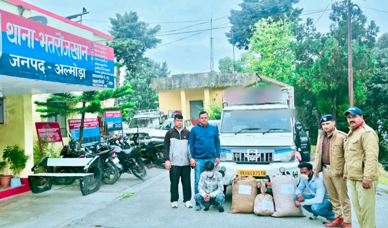 अपर पुलिस अधीक्षक हरबन्स सिंह व सीओ रानीखेत विमल प्रसाद के पर्यवेक्षण में निरीक्षक भुवन जोशी, प्रभारी एसओजी व थानाध्यक्ष भतरौजखान अवनीश कुमार के नेतृत्व में प्रभारी चौकी भिकियासैंण संजय जोशी मय पुलिस टीम व एसओजी की संयुक्त टीम द्वारा आज दिनांक 28.10.2025 की तड़के चौकी भिकियासैंण के पास चेकिंग की जा रही थी, वाहन संख्या- UK-06-CB-7518 पिकप रोककर तलाशी ली गई तो पिकप में सवार राजा और मलकीत के कब्जे से 03 कट्टो में कुल 32.910 कि0ग्रा0 अवैध गांजा बरामद हुआ। दोनों अभियुक्तों को गिरफ्तार करते हुए थाना भतरौजखान में मु0अ0स0-30/2025 धारा 8/20/60 NDPS एक्ट के तहत एफआईआर पंजीकृत कर आवश्यक कार्यवाही की गई। वाहन को सीज किया गया है।