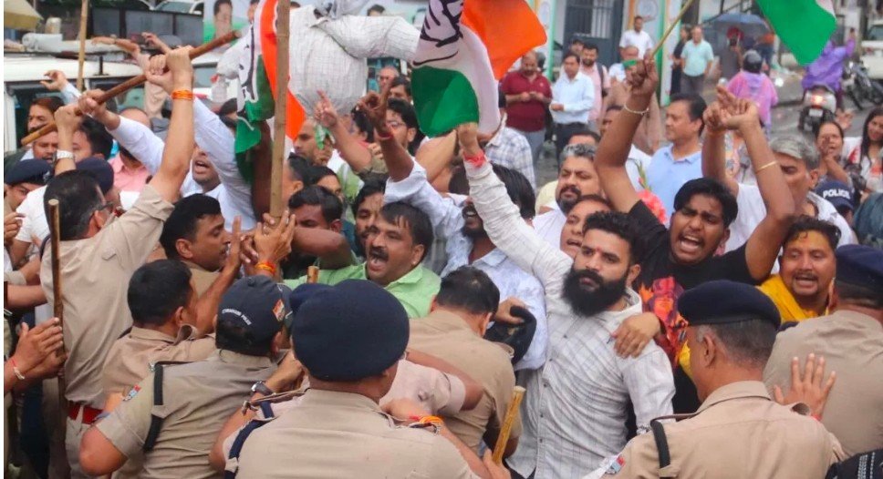 देहरादून की राजपुर रोड सोमवार को सियासी जंग का अखाड़ा बन गई। भाजपा और कांग्रेस आमने-सामने आ गईं। दोनों पार्टियों के कार्यकर्ताओं के बीच जमकर नारेबाजी, धक्का-मुक्की और हंगामा हुआ।