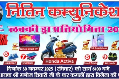अल्मोड़ा के नितिन कम्युनिकेशन के दीपावली लक्की ड्रा प्रतियोगिता 2025 का लक्की ड्रा कूपन के निकाला जायेगा। नितिन कम्युनिकेशन के…