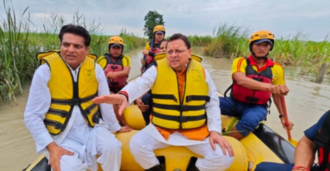रुड़की के लक्सर पहुंचे सीएम धामी, ट्रैक्टर पर बैठकर और राफ्ट से किया आपदा प्रभावित जलमग्न क्षेत्रों का निरीक्षण