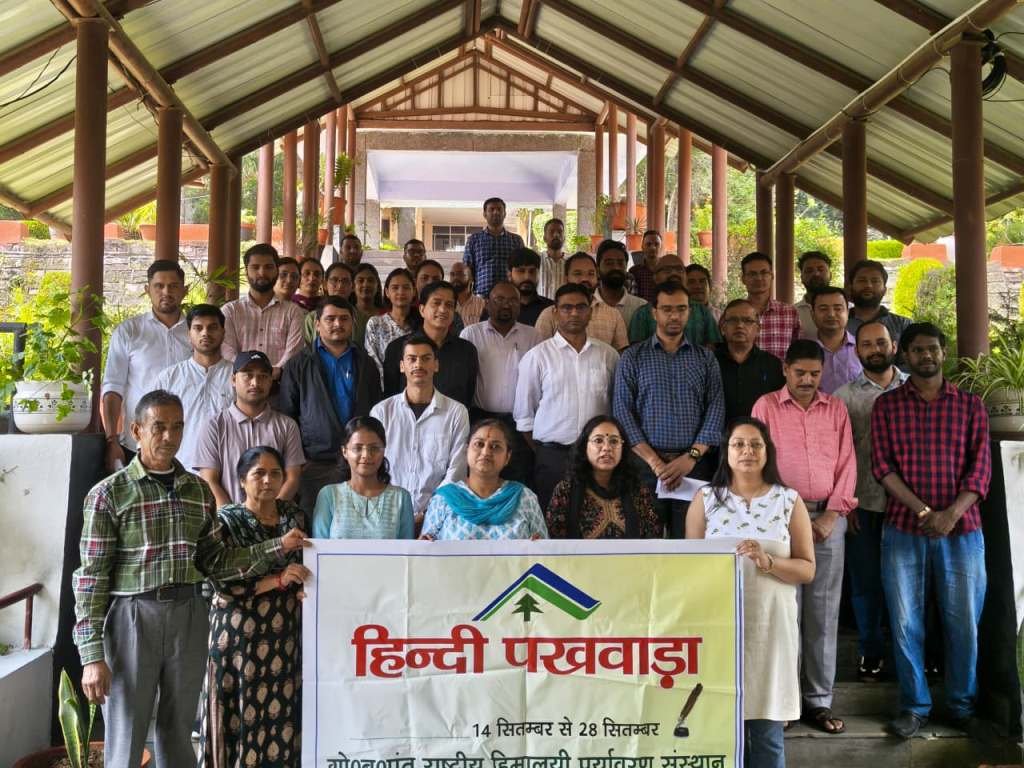 गोविन्द बल्लभ पन्त राष्ट्रीय हिमालयी पर्यावरण संस्थान, कोसी-कटारमल, अल्मोड़ा में दिनांक 14 सितम्बर से 28 सितम्बर 2025 तक ‘राजभाषा हिन्दी पखवाड़ा’ का आयोजन किया जा रहा है। राष्ट्रीय हिन्दी दिवस के उपलक्ष्य में 15 सितम्बर 2025 को संस्थान के वैज्ञानिकों, अधिकारियों तथा कर्मचारियों द्वारा ‘राजभाषा प्रतिज्ञा’ ली गई. इस अवसर पर संस्थान के प्रभारी निदेशक डॉ0 आई.डी. भट्ट ने हिन्दी के महत्व पर प्रकाश डाला एवं संस्थान के वैज्ञानिक डॉ0 आषीश पाण्डेय, वैज्ञानिक-सी द्वारा सभी को हिंदी के उपयोग तथा इसके प्रचार प्रसार हेतु प्रतिज्ञा दिलवाई गई तथा सभी प्रतिभागियों से राजभाशा हिन्दी का अधिकाधिक प्रयोग कर हिन्दी के प्रचार-प्रसार में सहयोग देने का आवहा्न किया। कार्यक्रम के अन्त में ई. महेन्द्र सिंह लोधी, वैज्ञानिक-एफ ने सभी अधिकारियों व कर्मचारियों को प्रतियोगिता में भाग लेने हेतु धन्यवाद दिया।