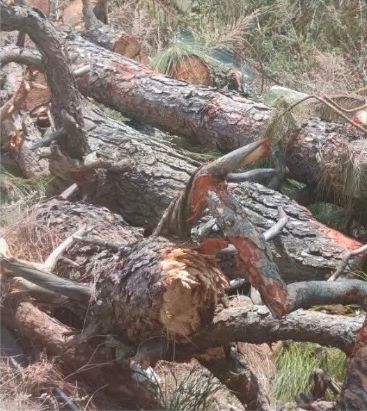 रुद्रप्रयाग के मद्महेश्वर घाटी मोटर मार्ग के किनारे चीड़ के पेड़ों अवैध कटान, वन विभाग आया हरकत में