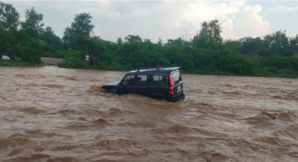 इसके बाद पत्थर आने की वजह से वाहन बीच नदी में फंस गया। इससे पर्यटकों के होश उड़ गए। तभी दूसरी ओर ग्रामीण हाथ पकड़कर नदी में उतरे और वाहन सवार लोगों को पार लगाने में मदद की। इसके बाद पर्यटक व ग्रामीण पानी कम होने का इंतजार करने लगे। डेढ़ घंटे बाद जब पानी कुछ कम हुआ तो ग्रामीण ट्रैक्टर की मदद से स्कार्पियो वाहन को नदी से बाहर लाए।
