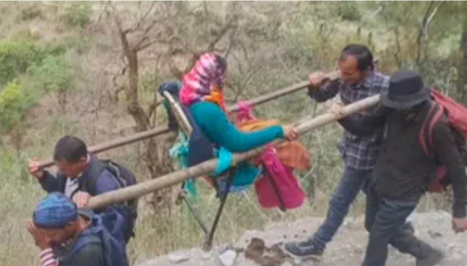 चमोली के मौली हडूंगा गांव में चारा लेने गई एक महिला पेड़ से गिरकर घायल सड़क न होने के कारण डंडी-कंडी के सहारे 8 km पैदल लाए