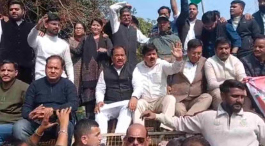 प्रदेश में बढ़े अपराधों के बीच कानून व्यवस्था पर सवाल उठाते हुए कांग्रेसी प्रदर्शन करते हुए पुलिस मुख्यालय पहुंचे। सुभाष रोड पर लगे बैरिकेडिंग पर चढ़कर कांग्रेस प्रदेश अध्यक्ष गणेश गोदियाल, चकराता विधायक प्रीतम सिंह, पूर्व कैबिनेट मंत्री हरक सिंह रावत व अन्य नेताओं ने कहा कि प्रदेश में लगातार अपराध की घटनाएं सामने आ रही है, लेकिन प्रदेश में कानून व्यवस्था ठप है। गुंजन हत्याकांड, अर्जुन हत्याकांड और अब विक्रम शर्मा की हत्या के साथ ही दून में शांति और सुकून की भी हत्या हुई। पॉश इलाके में शुमार राजपुर रोड पर शुक्रवार सुबह करीब 10 बजे हुए गोलीकांड से एक बार फिर सनसनी फैल गई। राजधानी देहरादून में 11 दिन में दिनदहाड़े लगातार हत्या की इस तीसरी घटना से पूरे शहर में दहशत है।
