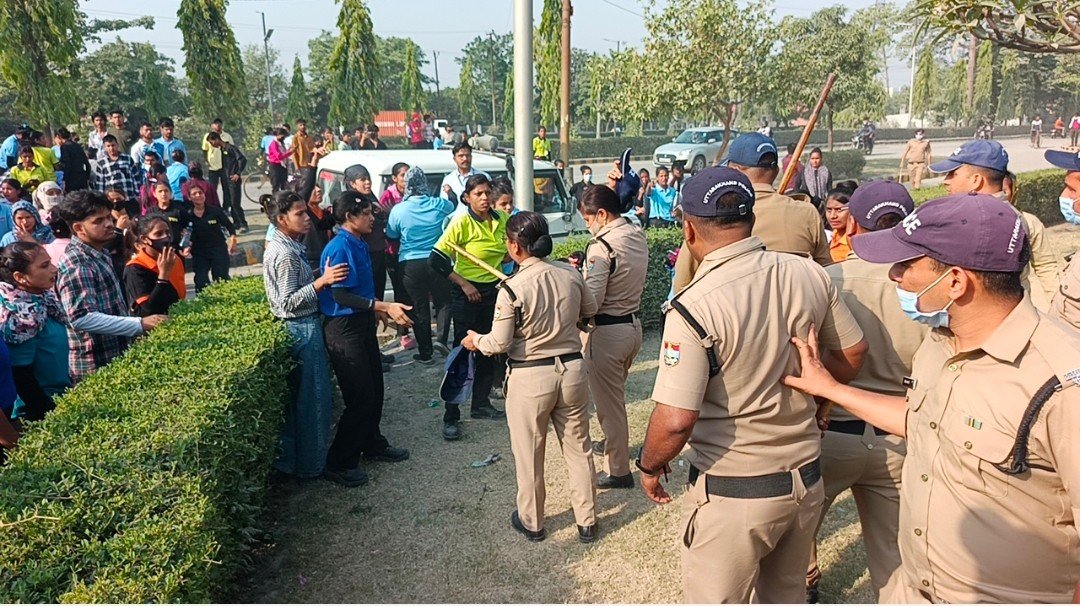 पंतनगर सिडकुल स्थित वी-गार्ड में श्रमिकों का धरना आज उग्र रूप ले बैठा, मौके पर प्रशासन और पुलिस की मौजूदगी में हालात तनावपूर्ण हो गए, जहां हल्के बल प्रयोग के बाद कई श्रमिकों के घायल और बेहोश होने की खबर है, बेहोश होने वालों में महिला श्रमिक भी हैं, उधम सिंह नगर के पंतनगर सिडकुल क्षेत्र में स्थित वी-गार्ड कंपनी के बाहर चल रहा श्रमिकों का धरना उग्र हो गया, जानकारी के अनुसार, श्रमिक पिछले कई दिन से अपनी मांगों को लेकर कंपनी परिसर के बाहर प्रदर्शन कर रहे थे, जो आज अचानक तनावपूर्ण स्थिति में बदल गया, स्थिति को नियंत्रित करने के लिए मौके पर तहसीलदार दिनेश कुटेला और पंतनगर सिडकुल चौकी प्रभारी सुरेंद्र सिंह बिष्ट पहुंचे, प्रशासनिक अधिकारियों के नेतृत्व में पुलिस बल ने प्रदर्शनकारियों को कंपनी परिसर से बाहर करने की कोशिश की, इस दौरान पुलिस द्वारा हल्का बल प्रयोग किया गया, जिससे माहौल और अधिक बिगड़ गया।